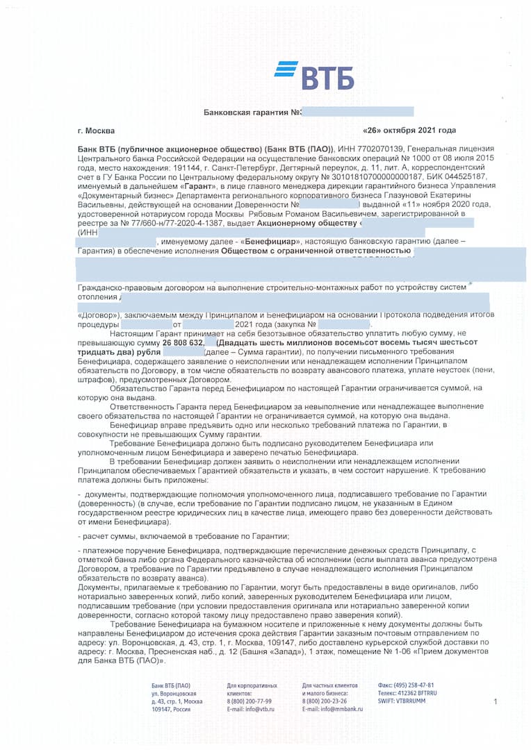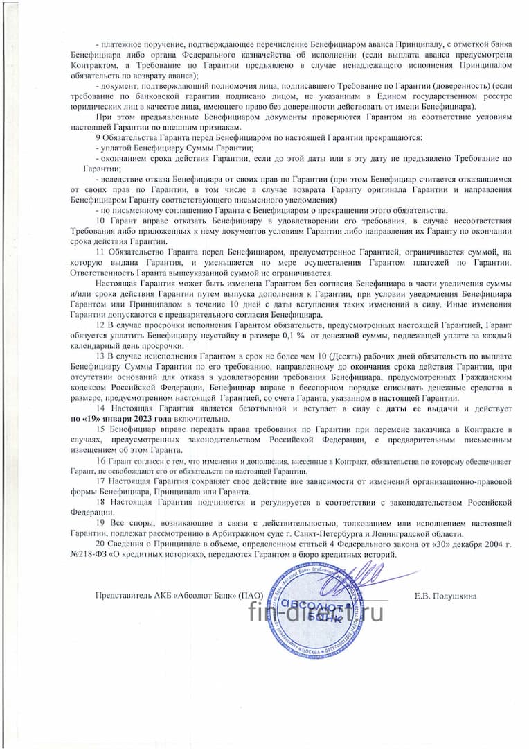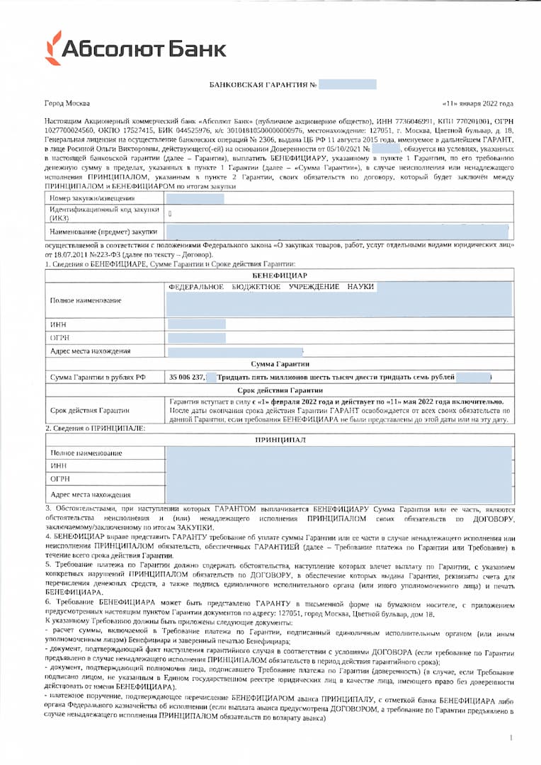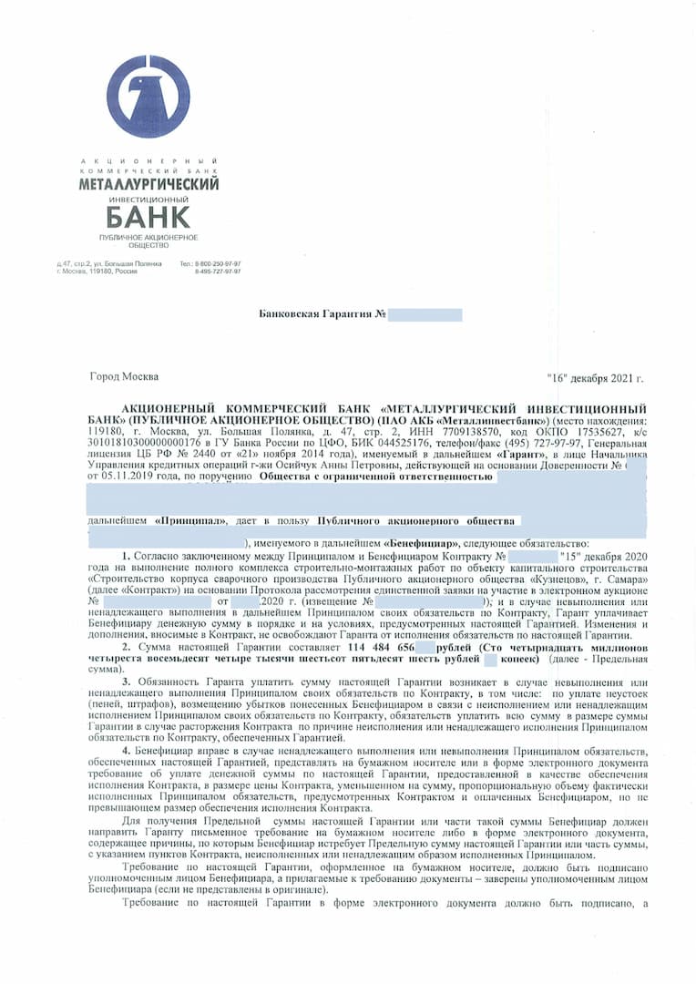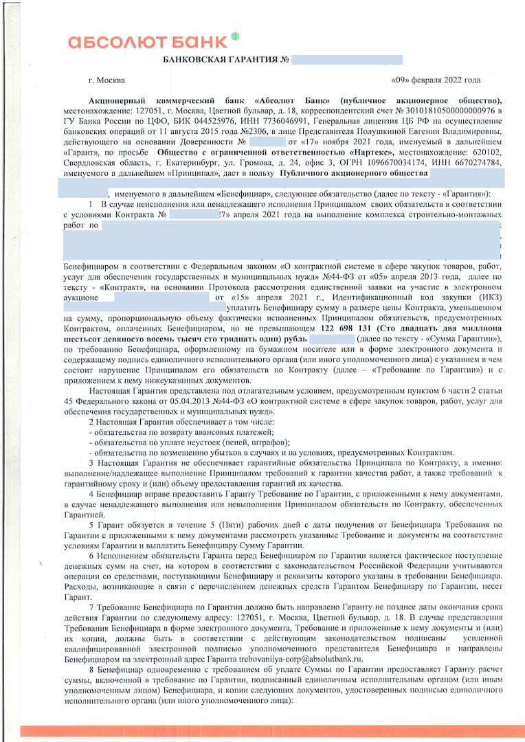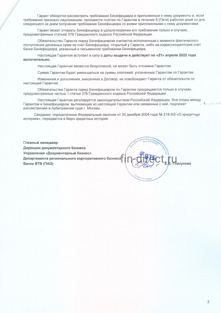 Стоимость банковской гарантии